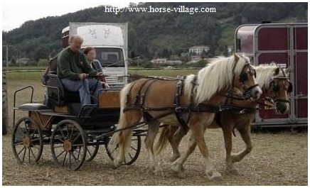 On peut atteler un seul cheval (le cheval est placé entre les brancards), on peut atteler en paire (les deux chevaux sont côte à côte), on peut atteler en tandem (les deux chevaux sont l’un derrière l’autre), on peut atteler à trois chevaux (un à l’avant et deux derrière) et on peut atteler à 4 chevaux en double paire avec une paire côte à côte devant et une autre derrière.