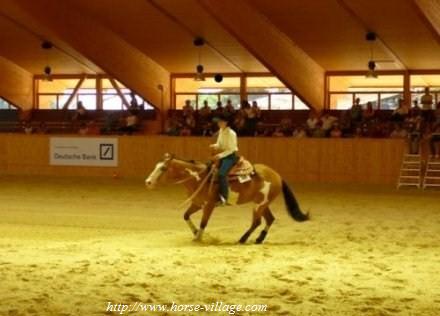 Le spin ou vrille : Il ne s’agit pas d’une manoeuvre au galop. Sans quoi les antérieurs ne pourraient pas se croiser. Le cheval doit tourner autour d’un postérieur interne stationnaire en se propulsant avec les trois autres membres. Selon Joe Hayes (juge NRHA) on est plus proche du trot que du galop.